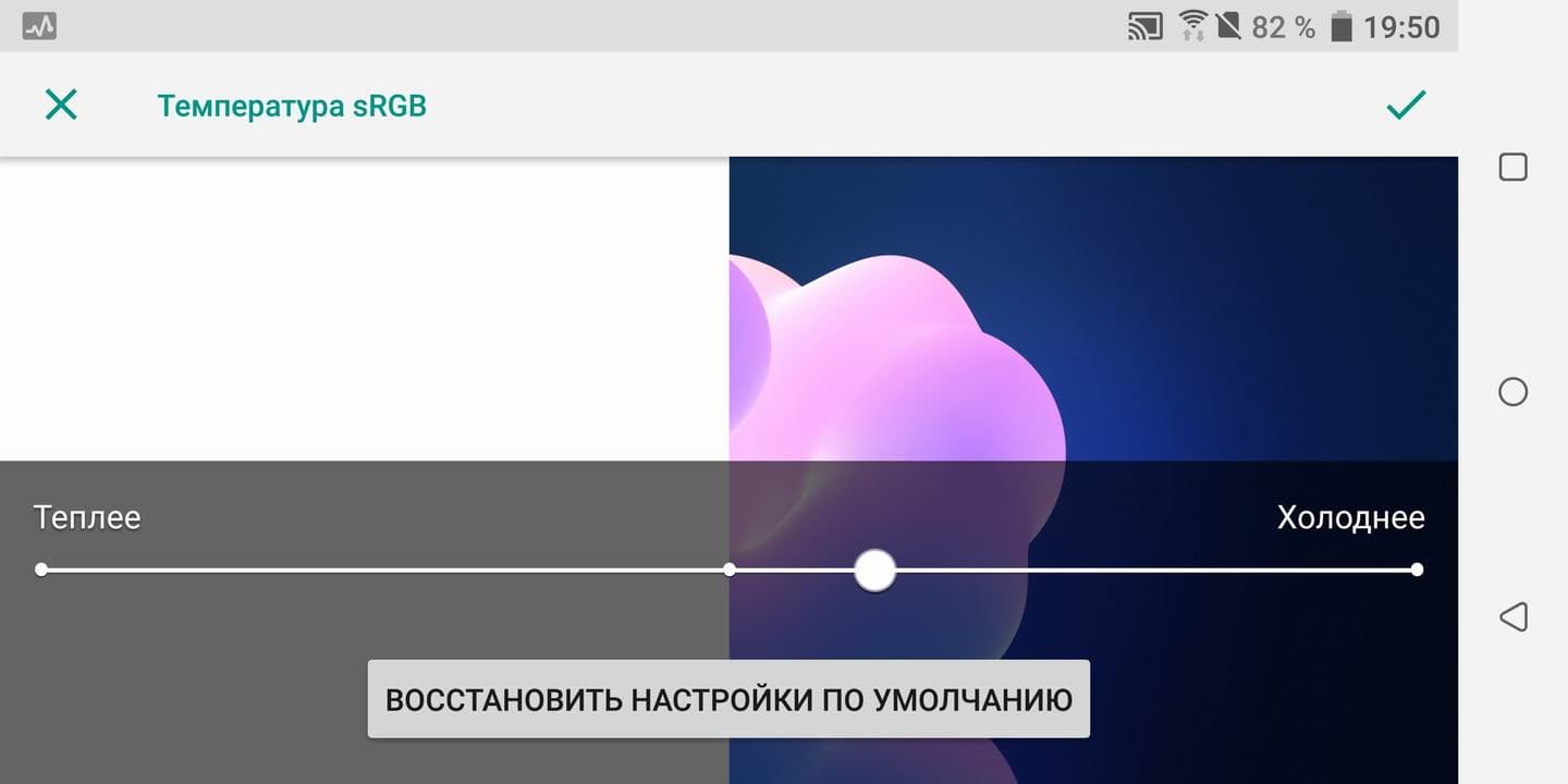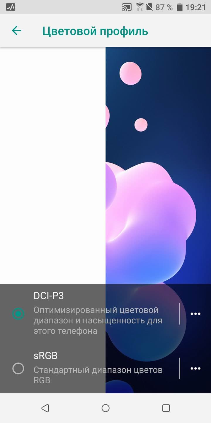 Впрочем, не все так плохо: в настройках экрана есть возможность выбрать профиль sRGB.