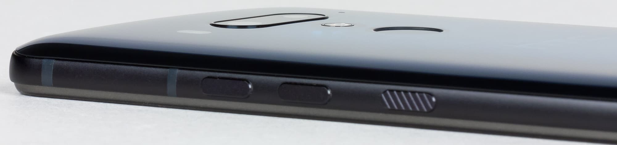 Все боковые кнопки установлены на правой грани, и про них разговор особый. На нашей памяти это первый смартфон, у которого боковые кнопки не механические, а полностью сенсорные. То есть под ними нет механизма нажатия, это просто обозначенные металлом «наросты» на общей боковой рамке, под которой скрываются сенсоры. Сама рама, таким образом, тоже реагирует на прикосновения и сжатия.