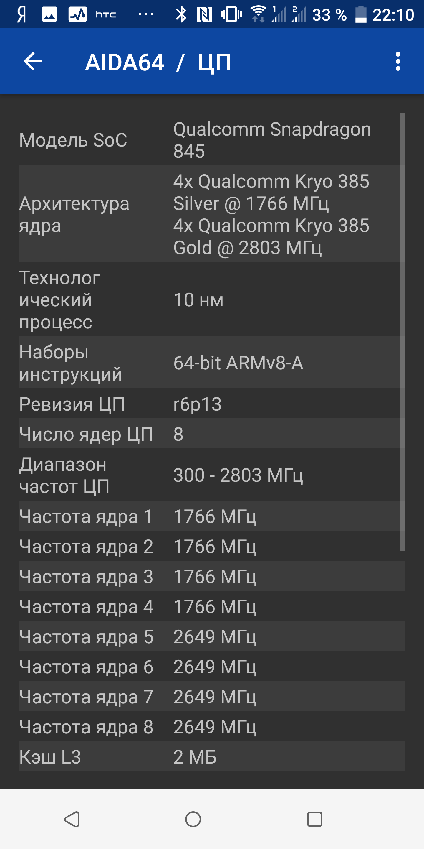 - SoC Qualcomm Snapdragon 845, 8 ядер (4 × Kryo 385 @2,8 ГГц + 4 × Kryo 385 @1,8 ГГц)
