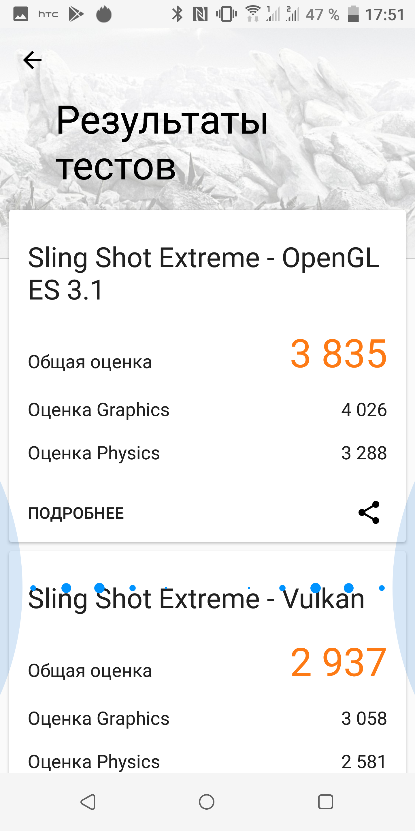 В реальных сценариях использования для этой SoC нет никаких преград, она уверенно справляется с любыми поставленными перед ней задачами. В том числе, нет никаких проблем с играми: все проверенные нами игры, включая Modern Combat 3, Mortal Kombat X, Injustice 2, уверенно идут на максимальных настройках без малейших притормаживаний. HTC U12+ — это один из самых мощных современных смартфонов, у него имеется значительный запас производительности для будущих обновлений.