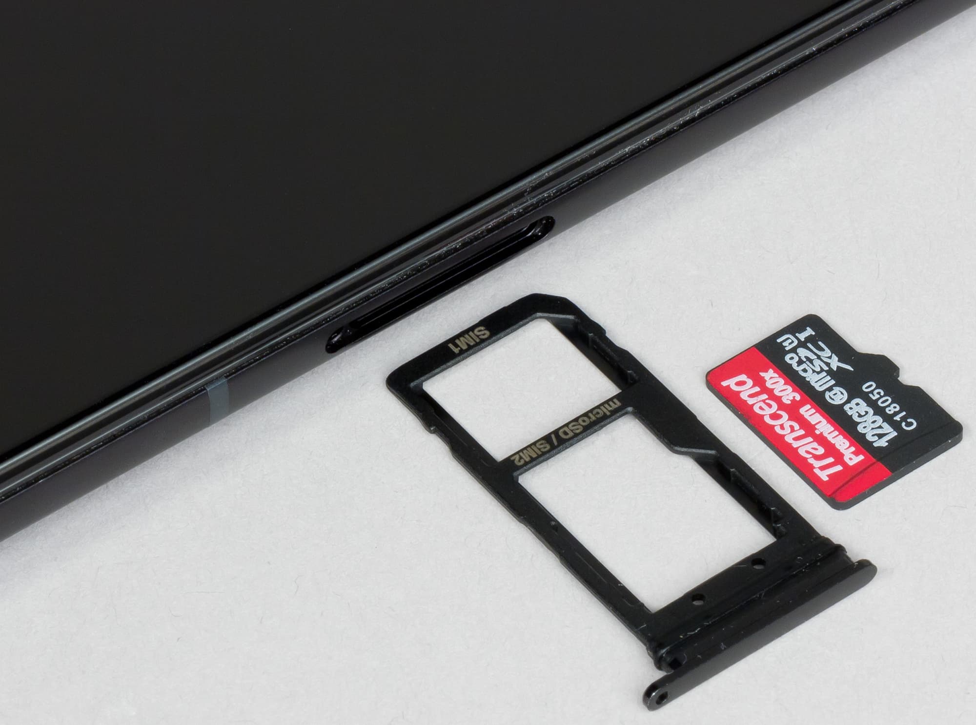Разъем для карточек (двух Nano-SIM и одной microSD) сделали гибридным. Все стандартно: либо ставишь две карточки формата Nano-SIM, либо одну меняешь на карту памяти microSD. Поддерживается горячая замена.