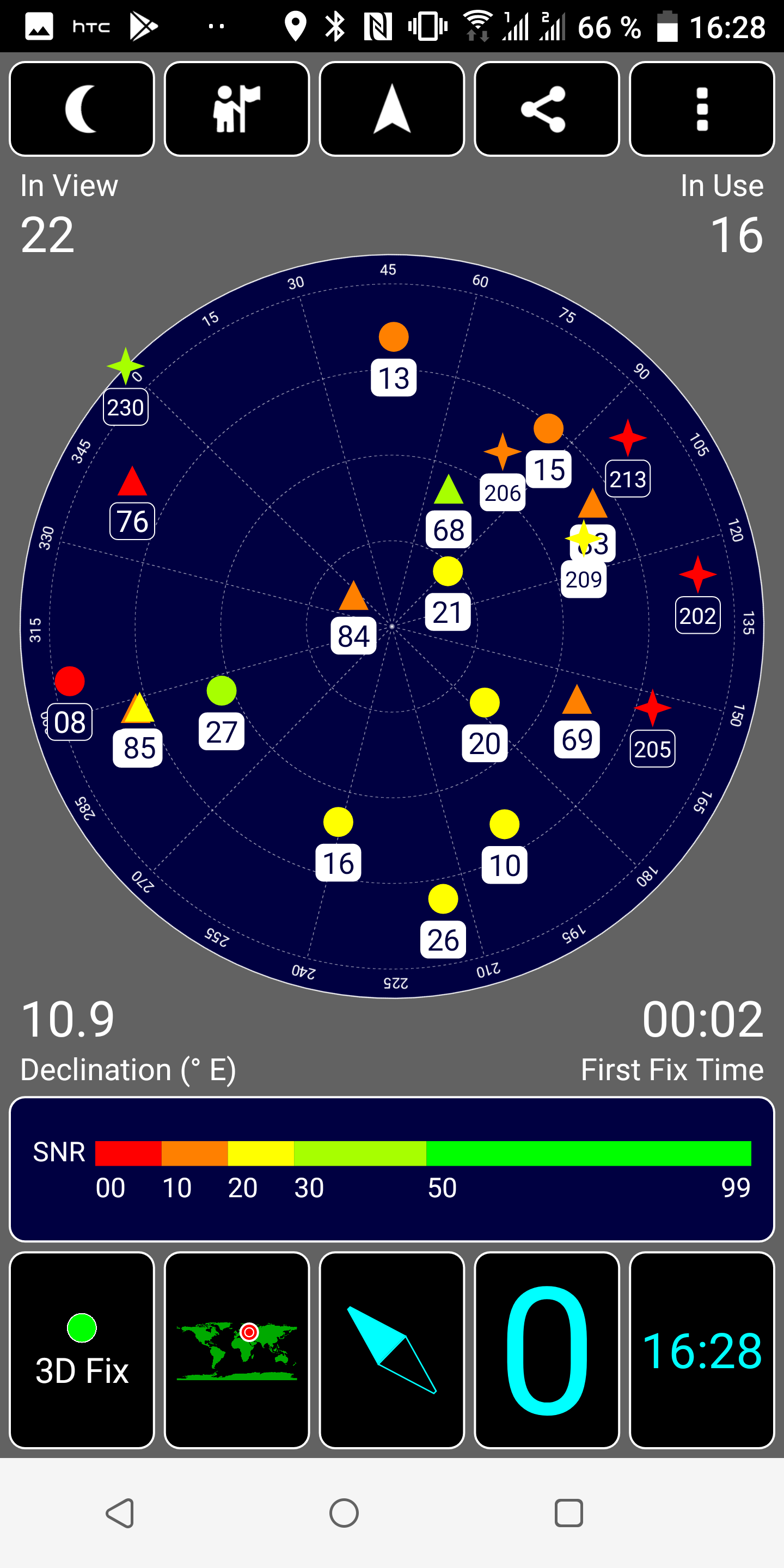 Навигационный модуль работает и с GPS (с A-GPS), и с отечественной Глонасс, и с китайской Beidou (также заявлена поддержка Galileo). Первые спутники даже при холодном старте обнаруживаются быстро, в течение первых же секунд, точность позиционирования не вызывает претензий. Магнитный компас, необходимый для навигационных программ, также на месте.