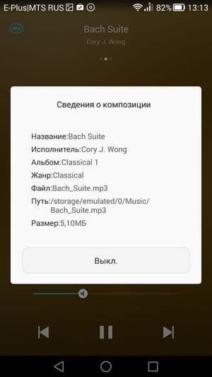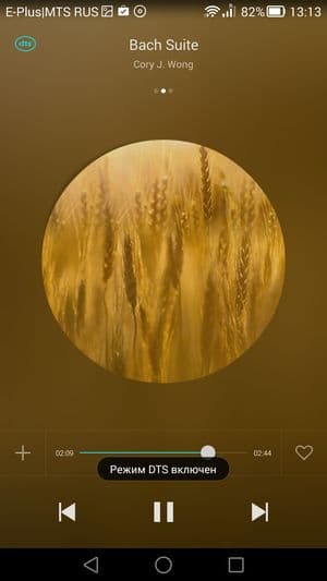 Смартфон весьма неплох по качеству звучания, для этого у него имеется и специальный звуковой чип (ЦАП TenSilica), и поддержка технологии DTS. Звук громкий и басистый, низкими частотами не обделен, и на максимальном уровне громкости динамик не хрипит, звучание остается чистым. Речь собеседника распознается уверенно, слуховой динамик четко передает все интонации и тембр голоса. В музыкальном проигрывателе звуковых настроек практически нет, имеется только возможность включить или выключить технологию улучшения звука DTS. FM-радио в штатной комплектации смартфона имеется, нашелся и диктофон. Радио без подключенных в качестве внешней антенны наушников работать не будет.