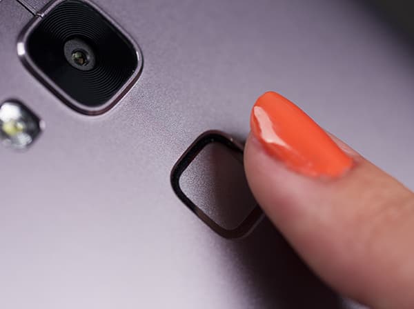 Помимо привычных глазков камеры и вспышки, на задней стенке Huawei Ascend Mate 7 можно обнаружить один не совсем привычный элемент. Чуть ниже квадратного стеклышка тыльной камеры разработчики установили такого же размера квадратную сенсорную панельку для считывания отпечатков пальцев. Датчик отпечатков пальцев размером 9,16×9,16 мм запоминает до пяти наборов различных отпечатков для обычного и гостевого режимов, предоставляя пользователю возможность переключать режимы для повышения защиты доступа к личным папкам или приложениям.