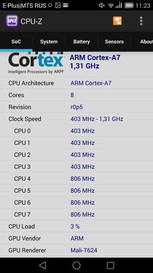 - SoC HiSilicon Kirin 925, 8 ядер ARM big.LITTLE (4 ядра Cortex-A15 @1,7 ГГц + 4 ядра Cortex-A7) + процессор Smart-l3 для работы с сенсорами