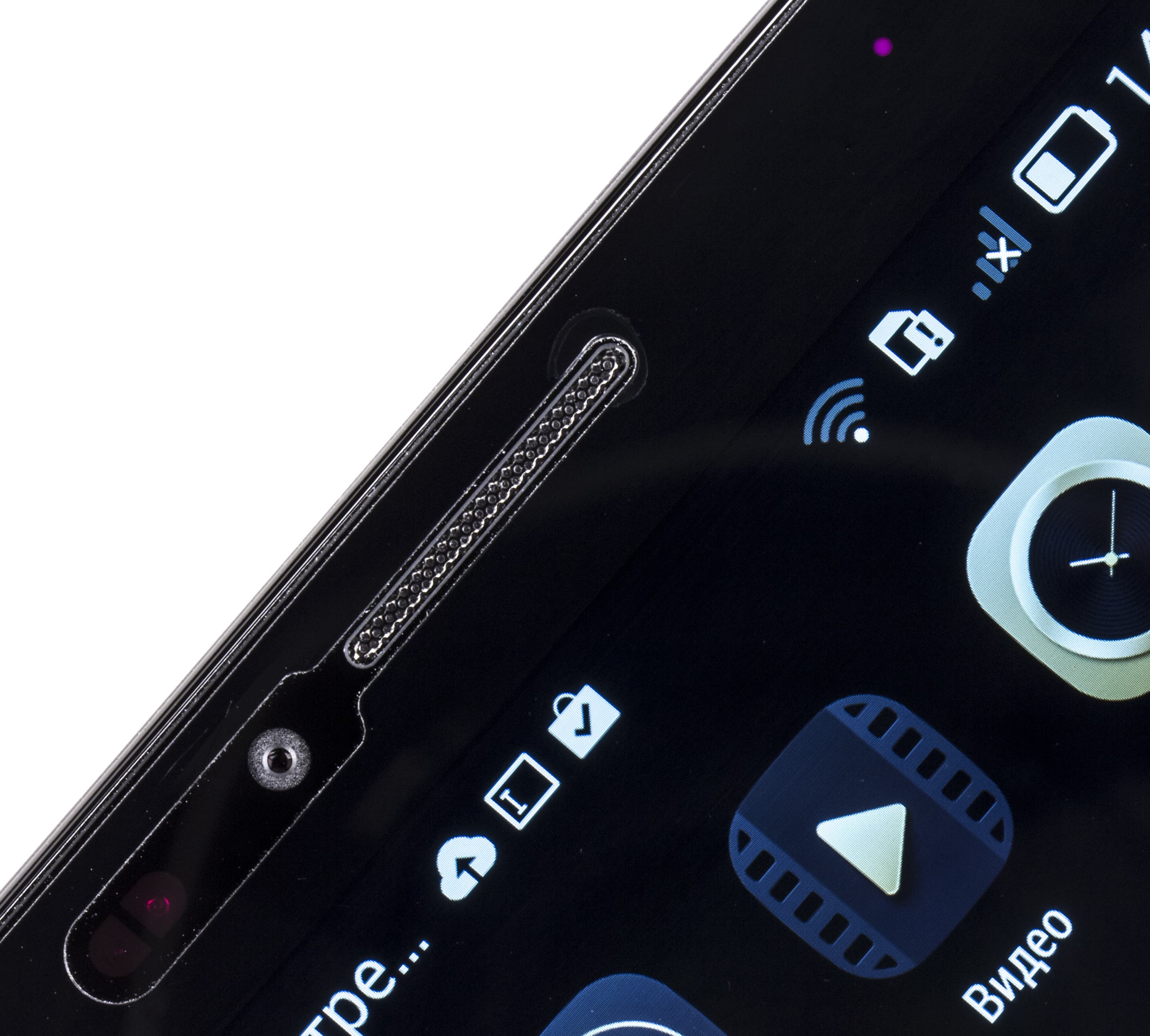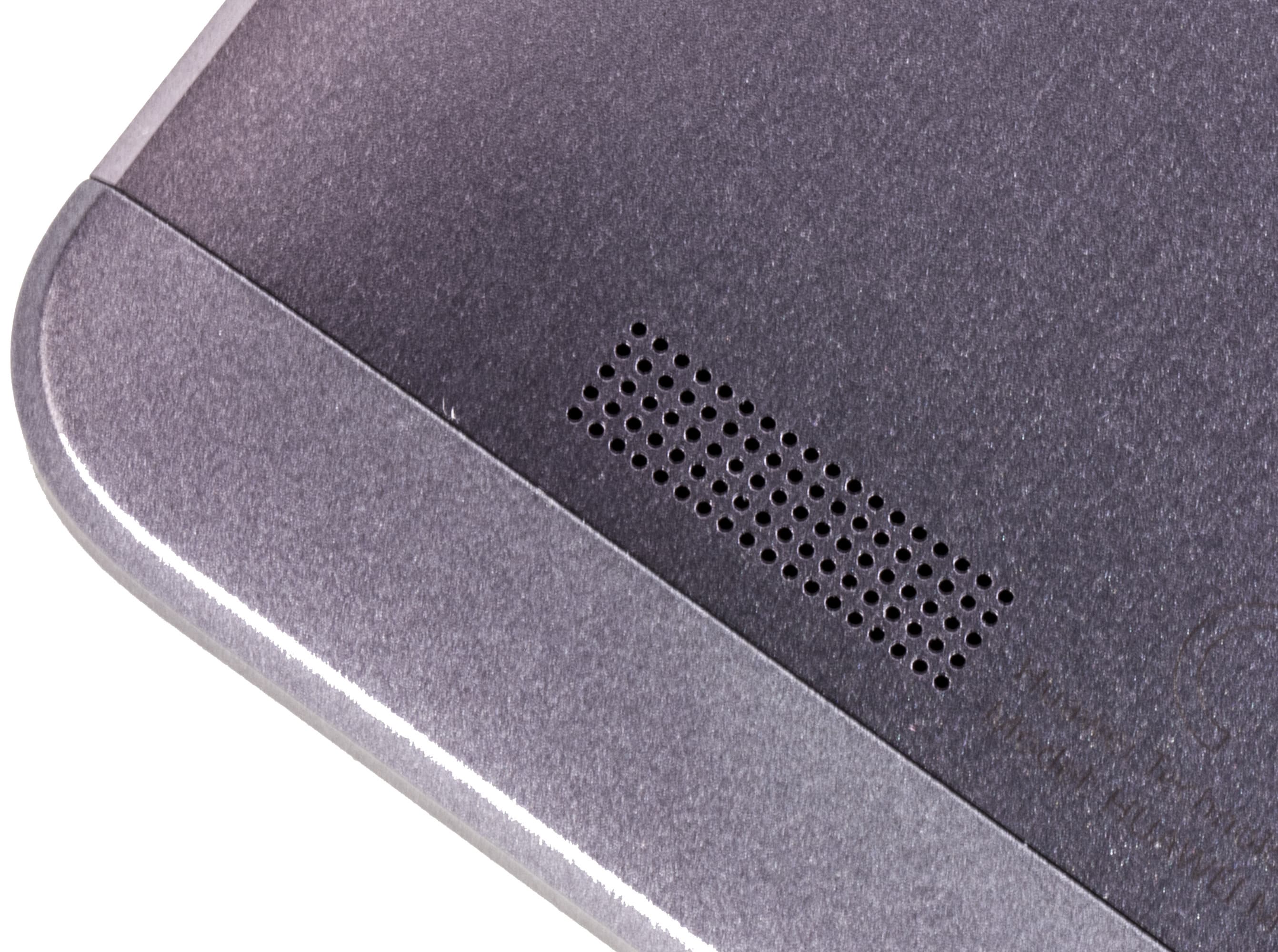 Ниже расположена решетка основного динамика, выполненная в виде массива мелких круглых отверстий. Видимо, часть отверстий не перекрывается твердой поверхностью, когда смартфон привычно лежит экраном вверх, поскольку звук лежащего на столе аппарата практически не приглушается.