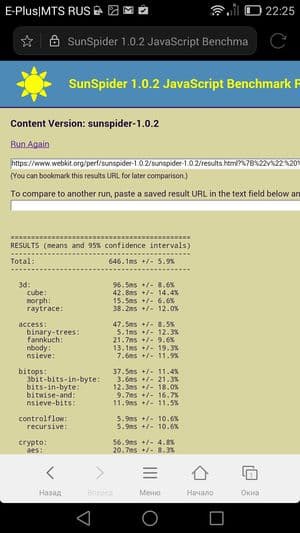 Что касается бенчмарков для оценки скорости движка javascript, то стоит всегда делать скидку на то, что в них результаты существенно зависят от браузера, в котором запускаются, так что сравнение может быть истинно корректным только на одинаковых ОС и браузерах, а такая возможность имеется при тестировании не всегда. В случае с ОС Android мы всегда стараемся использовать Google Chrome.