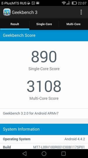 | GeekBench 3 (больше — лучше) | 890/3108 | 967/2925 | 1038/3146 | 971/2330 |