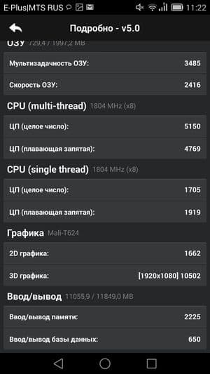 По результатам тестирования в бенчмарках новинка показала потрясающие результаты производительности. В тесте AnTuTu 5.x испытуемый показал даже более высокие результаты, чем демонстрировали до него общепризнанные мировые лидеры. Правда, пока не совсем понятно, как результаты двух версий популярного бенчмарка коррелируют между собой, ведь теперь на смену четвертой версии пришла пятая, и все новые аппараты отныне тестируются в ней. Привели ли разработчики все к общему знаменателю, неизвестно, так что пока придется помечать в табличках, с какими версиями бенчмарка тестировалась та или иная модель. Впрочем, разница наверняка не столь уж велика, и в любом случае аппаратных мощностей смартфона еще долго будет хватать для выполнения любых поставленных задач.