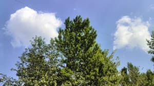 Очень интересную работу продемонстрировали программные компоненты камеры. Шарп повышает резкость как-то избирательно, но порой довольно агрессивно, и зачастую не к месту. Например, не совсем понятно, зачем «обводить» черные провода на фоне белого облака. Та же ситуация с верхушками крон деревьев. С другой стороны, во многих моментах он проявляет себя очень достойно, как в случае с автомобильными номерами. Сами кроны деревьев шарп не трогает, поэтому они выглядят размазанными. Возможно, в эту смазанность свою лепту вносит и фильтр шумов.