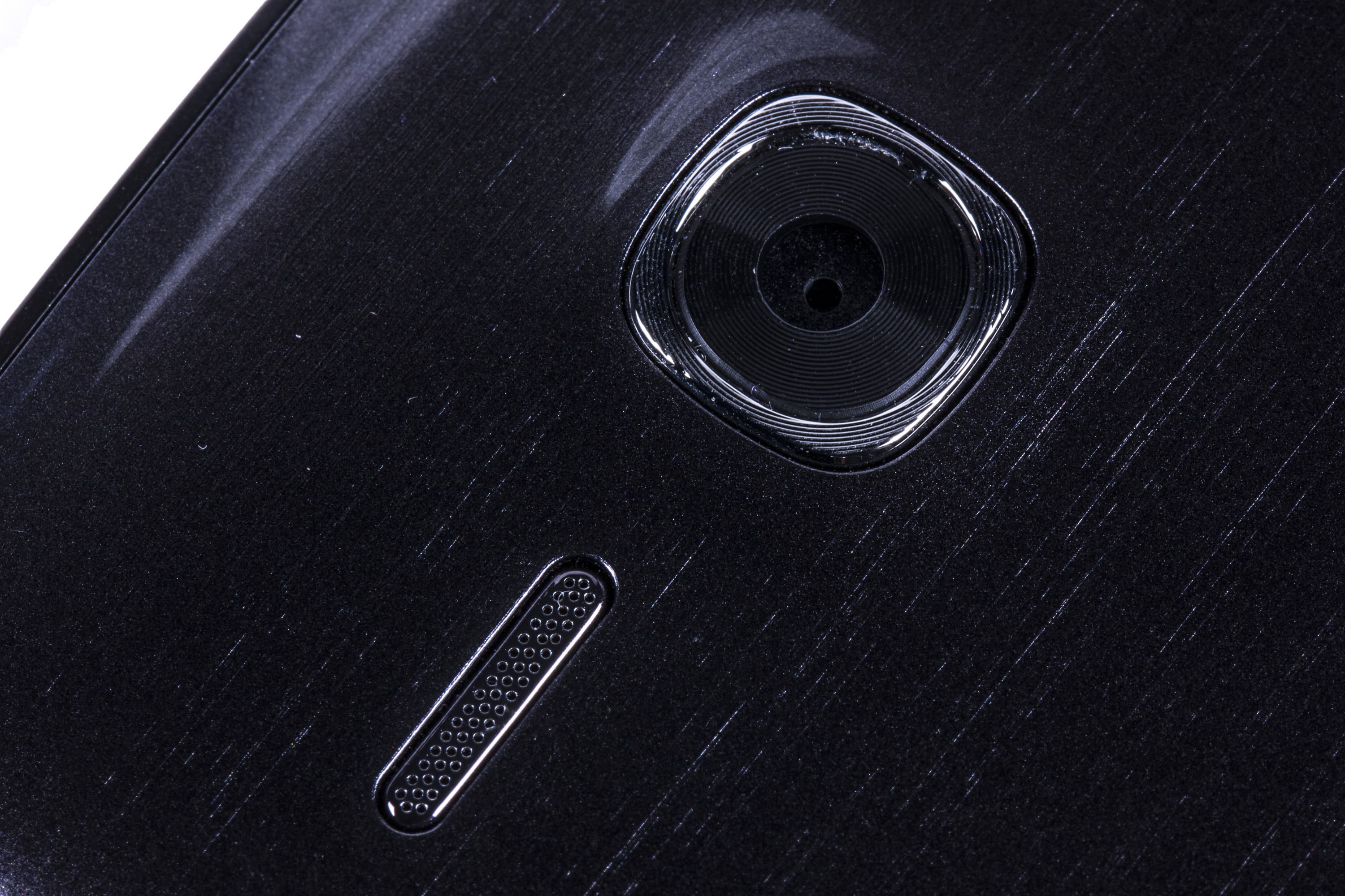 Для динамика смартфона и объектива камеры в крышке аккумуляторного отсека предусмотрены отверстия. Ободок вокруг объектива несколько выступает над плоскостью задней панели смартфона, так что корпус Huawei Hero 3 опирается на стекло камеры, когда лежит на ровной горизонтальной поверхности, например на столе. Понятно, что такая конструкция не добавляет сохранности стеклу объектива камеры.