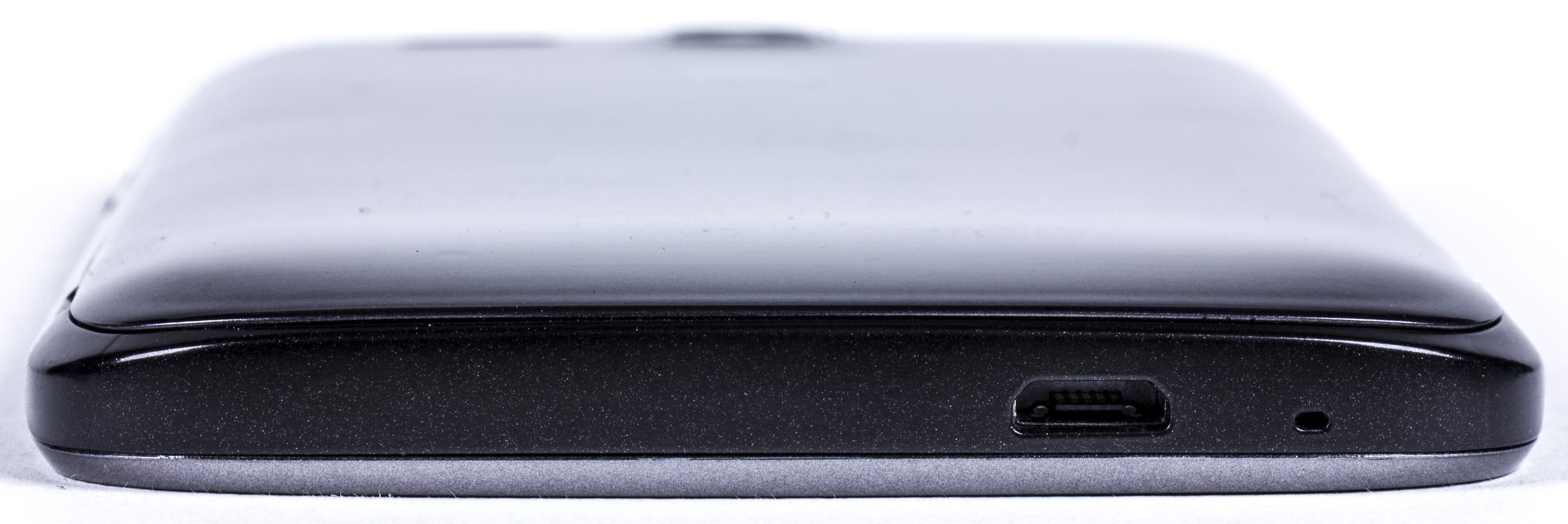 На верхнем торце корпуса Huawei Hero 3 расположен одинокий разъем 3,5 мм для наушников. На нижнем торце находятся микрофон и разъем Micro-USB.
