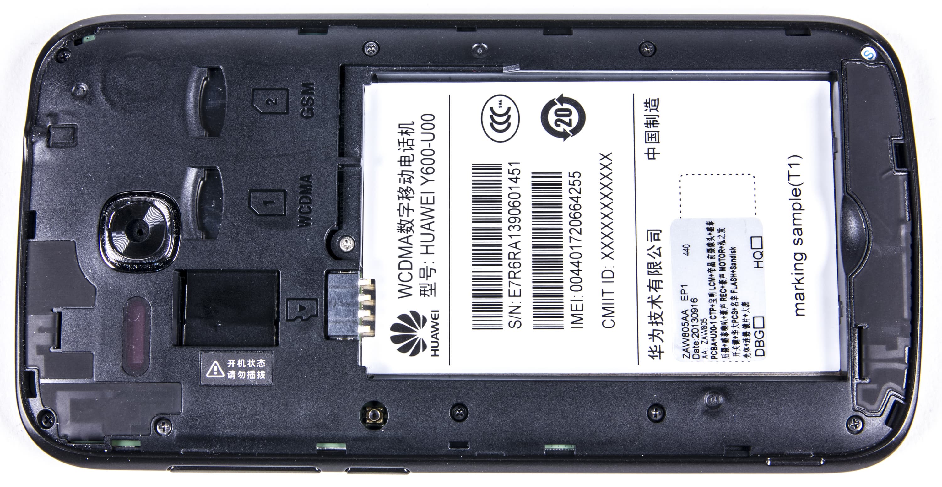 Смартфон попал к нам в руки без упаковки и аксессуаров, на стикере под аккумуляторной батареей оказалась надпись, информирующая о том, что этот экземпляр Huawei Hero 3 — тестовый образец (marking sample).