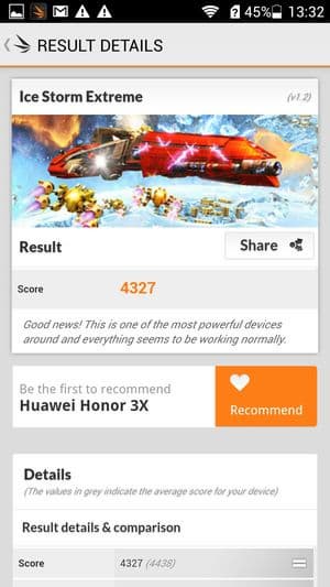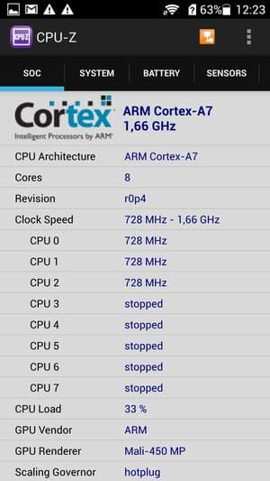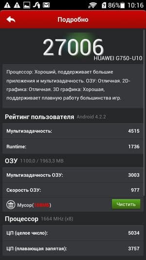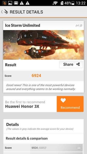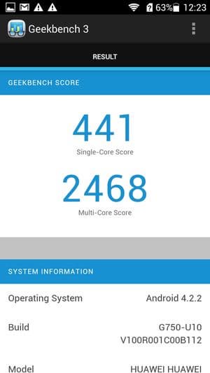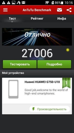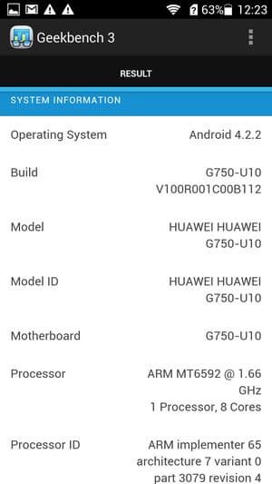 Аппаратная платформа Huawei Honor 3x строится на базе восьмиядерной однокристальной системы (SoC) MediaTek MT6592, официально представленной в конце прошлого года. Особенностью SoC является то, что в ее конфигурацию входит восемь полноценных процессорных ядер, [одновременно] функционирующих на частоте до 2 ГГц (в данном случае — 1,7 ГГц). Правда, здесь использованы всего лишь ARM Cortex-A7, то есть далеко не самые мощные ядра, так что если приложение не способно нагружать 8 ядер одновременно, то и прироста в производительности новой SoC по отношению к другим системам с меньшим количеством более быстрых ядер (Cortex-A9, Cortex-A15) ожидать нет никакого резона. Что, собственно, и было продемонстрировано протестированными нами ранее Zopo 998 и THL T100S во время проверки в большинстве современных тестов. У топового TCL Idol X+ с этим дело обстоит лучше, так как он работает на более продвинутой версии платформы с максимальной частотой процессорных ядер 2 ГГц против 1,7 ГГц у сегодняшнего испытуемого.