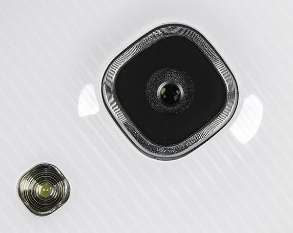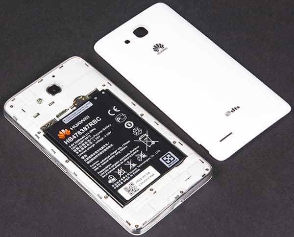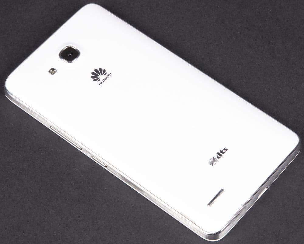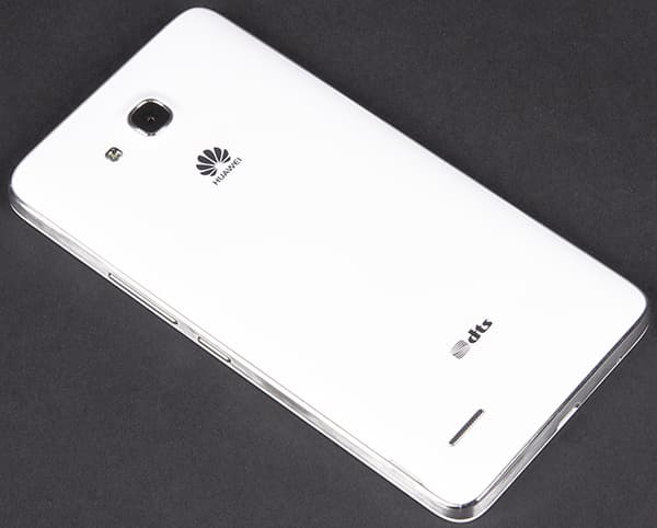 На задней панели традиционно располагаются модуль основной камеры (в этот раз окошко имеет квадратную форму, а не круглую, как у Ascend D2) и глазок светодиодной вспышки, способной работать в качестве фонарика при помощи предустановленной программы.
