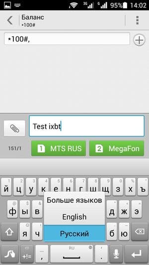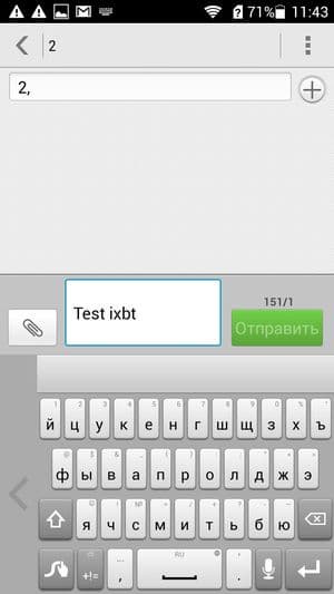 Самопроизвольных перезагрузок/выключений за время тестирования не наблюдалось, с этим проблем нет, интерфейс работает очень быстро, задержек и заторможенности нет и в помине. Экран у смартфона крупный, поэтому прорисовка букв и цифр виртуальных клавиатур вполне комфортна для управления. Раскладка и расположение клавиш не совсем стандартные: переключение языков здесь осуществляется не нажатием на выделенную кнопку, а удержанием нажатого пробела и выбора языка из всплывающего контекстного меню. Выделенного верхнего ряда с цифрами нет — придется каждый раз переключать раскладку, хотя место, в принципе, позволяло. Телефонное приложение поддерживает Smart Dial, то есть во время набора телефонного номера сразу осуществляется и поиск по контактам. Имеется и возможность ввода текста безотрывным письмом (Swype), а также можно приблизить виртуальную клавиатуру поближе к любой из боковых сторон для удобства управления пальцами одной руки.