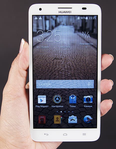 Экран у Huawei Honor 3X даже чуть-чуть темнее (яркость по фотографиям 96 против 97 у Nexus 7). Двоение отраженных объектов в экране Huawei Honor 3X очень слабое, это свидетельствует о том, что между слоями экрана (конкретнее между внешним стеклом и поверхностью ЖК-матрицы) нет воздушного промежутка (экран типа OGS — One Glass Solution). За счет меньшего числа границ (типа стекло-воздух) с сильно различающимися коэффициентами преломления такие экраны лучше смотрятся в условиях сильной внешней засветки, но вот их ремонт в случае потрескавшегося внешнего стекла обходится гораздо дороже, так как менять приходится экран целиком. На внешней поверхности экрана есть специальное олеофобное (жироотталкивающее) покрытие (очень эффективное, немного лучше, чем у Nexus 7), поэтому следы от пальцев удаляются существенно легче, а появляются с меньшей скоростью, чем в случае обычного стекла.