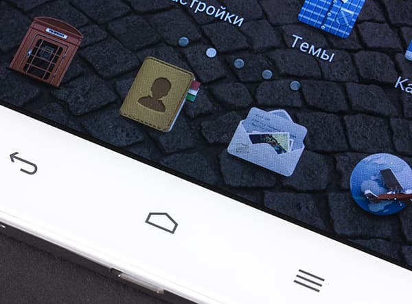 Внизу под экраном на передней панели расположены в ряд три управляющих кнопки — они, естественно, сенсорные, имеют неяркую белую подсветку без возможности самостоятельной настройки ее работы.