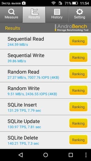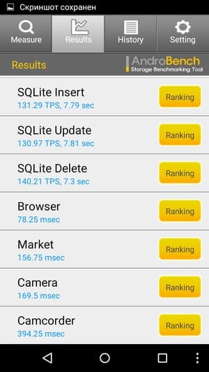 Результаты теста AndroBench на скорость работы с памятью: