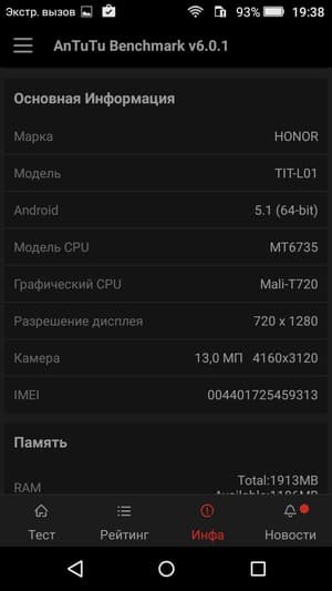 Основные характеристики Honor 4C Pro (TIT-L01)