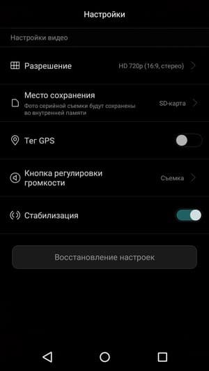 Меню управления съемкой довольно широкое по своим возможностям, есть и ручные настройки ISO, выдержки, баланса белого, можно изменить насыщенность, яркость и контраст, добавить графические эффекты. Передавать управление настройками камеры сторонним приложениям с помощью Camera2 API нельзя, возможности записи в RAW тоже нет.
