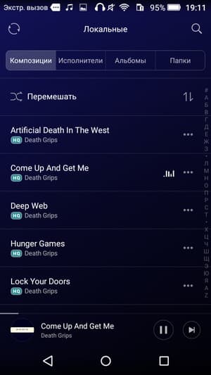 Как это часто бывает у бюджетных устройств, звуковые возможности героя обзора заметно отличаются в зависимости от того, звучит вызывной динамик или подключенные к аппарату наушники. В качественных наушниках звучание можно охарактеризовать, как вполне добротное: звук яркий, насыщенный, спектр частот широк, и что удивительно, низких в достатке. И в то же время звучание внешнего динамика не такое интересное: звучание довольно однообразное, безликое, но хотя бы громкое и чистое без искажений. Вызывной динамик рассчитан преимущественно для сигналов вызова, и со своими задачами он вполне справляется. Однако музыку прослушивать на Honor 4C Pro лучше, безусловно, через наушники. В штатном проигрывателе, как обычно, нет никаких ручных средств для улучшения звучания, все отдано на откуп автомату.