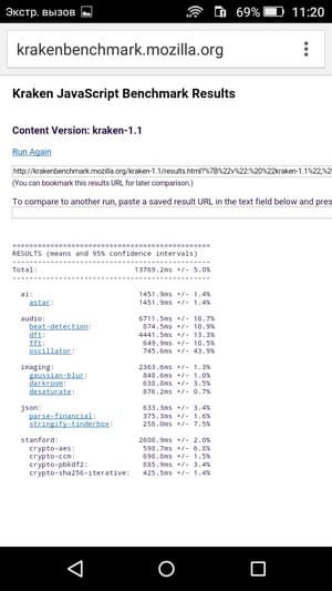 Что касается бенчмарков для оценки скорости движка javascript, то стоит всегда делать скидку на то, что в них результаты существенно зависят от браузера, в котором запускаются, так что сравнение может быть истинно корректным только на одинаковых ОС и браузерах, а такая возможность имеется при тестировании не всегда. В случае с ОС Android мы всегда стараемся использовать Google Chrome.