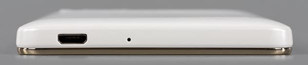Что касается разъемов, то они привычно разместились по торцам устройства. Универсальный разъем Micro-USB встроили в нижний торец, он поддерживает подключение устройств в режиме USB OTG. Рядом с ним виднеется отверстие разговорного микрофона.