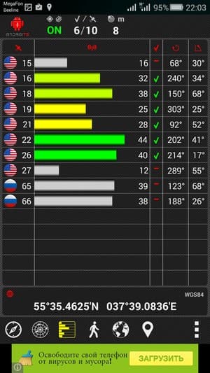 Навигационный модуль работает с GPS/A-GPS и отечественной системой Глонасс. Скорость срабатывания модуля навигации в целом претензий не вызывает. Среди сенсоров смартфона реализован датчик магнитного поля, на основе которого обычно функционирует электронный компас навигационных картографических программ.