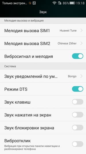 Honor4C оснащен только одним вызывным динамиком, звук он издает вполне чистый, яркий, без заметных искажений, максимальный уровень громкости вполне удовлетворительный, а вот низких частот недостаточно. То же самое можно сказать и про звук в наушниках: звучание яркое, сочное, приятное на слух, но низких частот не в избытке. В разговорном динамике речь собеседника, тембр и интонации остаются узнаваемыми, здесь претензий нет. Для управления качеством звучания в фирменном плеере никаких ручных настроек нет, можно лишь включить или выключить комплексную систему улучшения звука DTS.