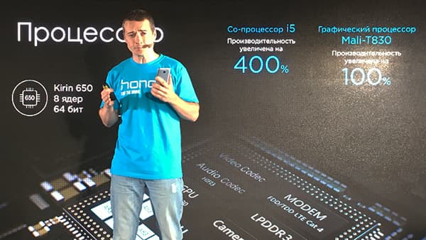 - SoC HiSilicon Kirin 650, 8 ядер ARM Cortex-A53, 4×2000 МГц и 4×1700 МГц