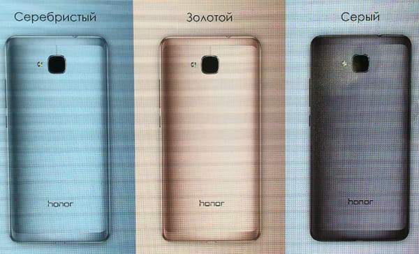 В Россию Huawei привезла свой Honor 5C в трех наиболее распространенных вариантах цветов корпуса: темно-сером, светло-серебристом и золотистом. Как выглядит вживую золотистый вариант окраса, видно на предыдущей картинке.