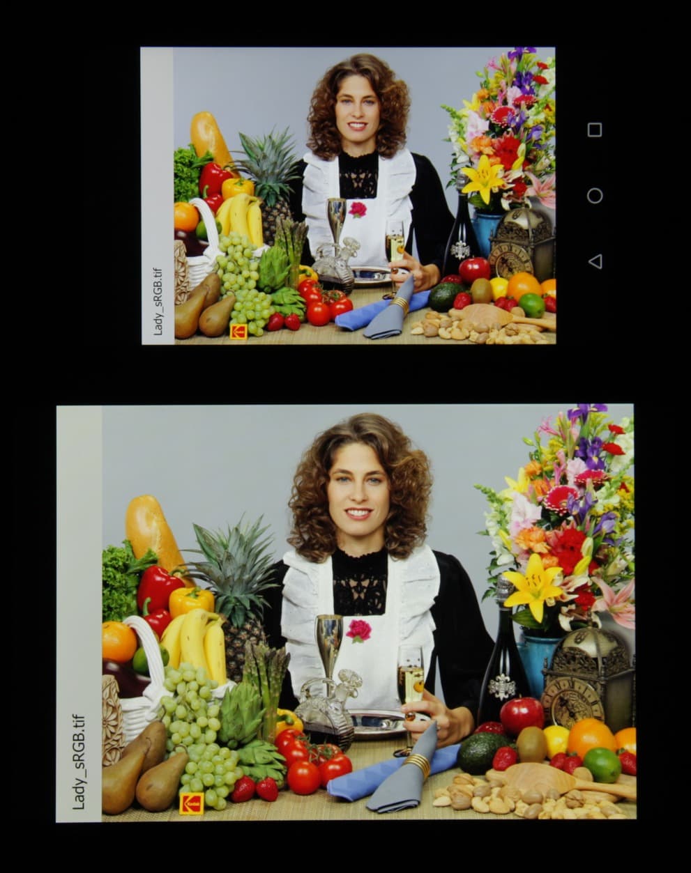 Видно, что цвета не сильно изменились у обоих экранов, но у Huawei Honor 5X контраст уменьшился в большей степени из-за сильного высветления черного. И белое поле: