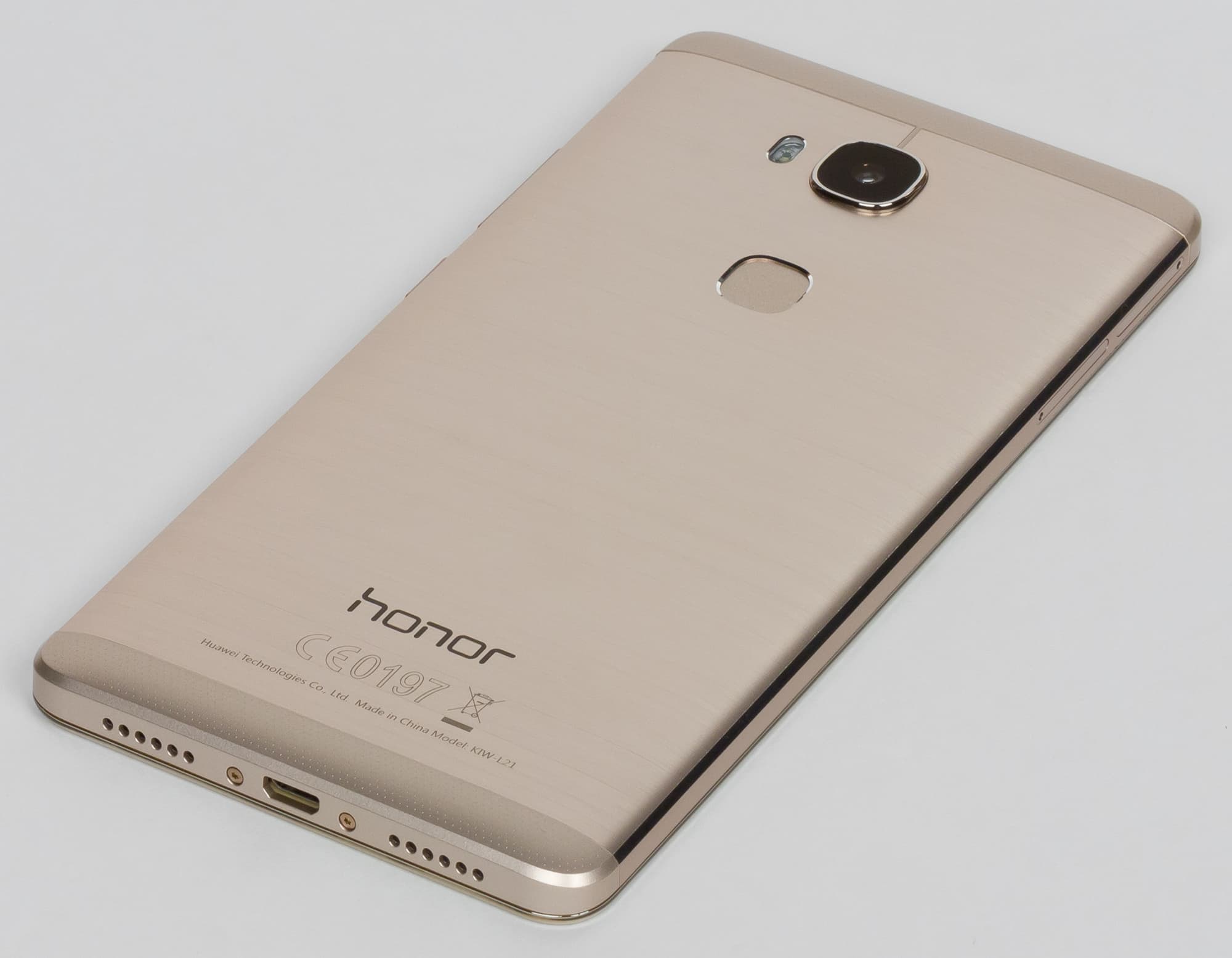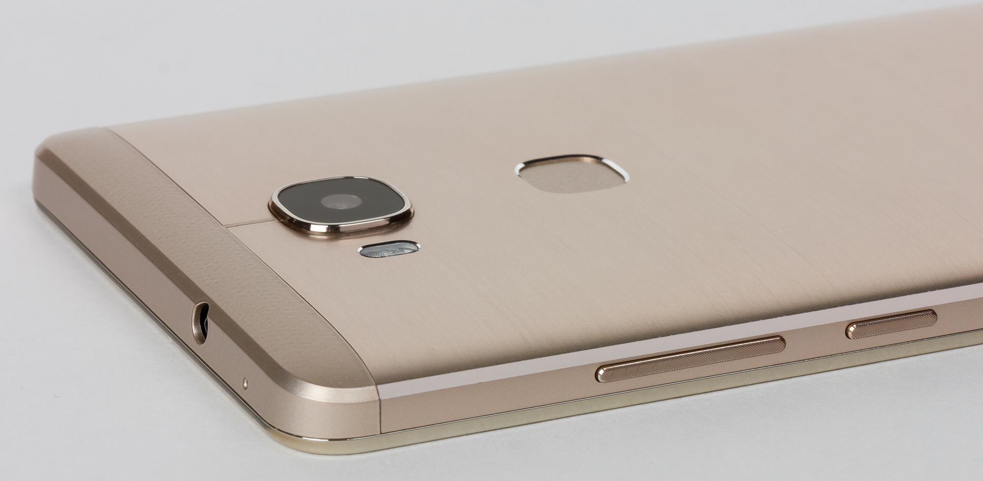 Смартфон по размерам достаточно крупный, однако небольшая масса, а также изогнутая форма задней крышки и срезанные на боковинах фаски позволяют с комфортом удерживать Honor 5X в руке. Сборка нареканий не вызывает, корпус монолитен, все детали идеально подогнаны друг к другу без швов и нестыковок. Ни малейшего скрипа корпус при сжатии не издает.