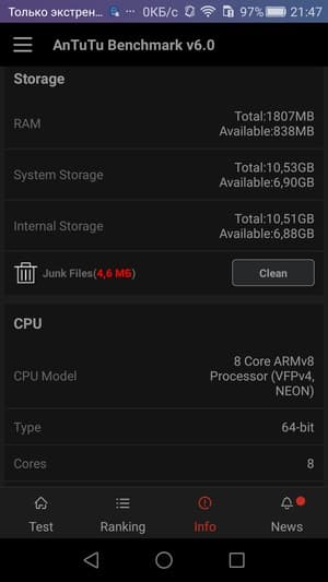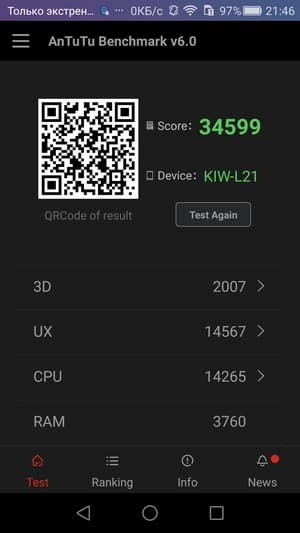| AnTuTu (больше — лучше) | 34599 (v6.x) | 47256 (v5.x) | 42355 (v5.x) | 47323 (v5.x) |