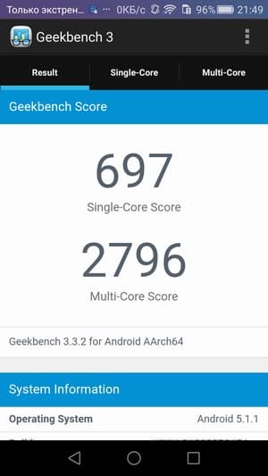| GeekBench 3 (больше — лучше) | 697/2796 | 924 / 2846 | 811/4088 | 969/3876 |