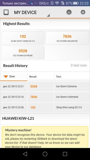 Аккумуляторная батарея, установленная в Honor 5X, имеет весьма достойную для современных смартфонов емкость в 3000 мА·ч. Соответственно, ничто не помешало герою обзора продемонстрировать высокий уровень автономности. Обошлось без рекордов, но испытуемый в любом случае демонстирует во всех тестах время автономной работы выше среднего уровня, с этим у данного аппарата проблем точно нет. При этом тестирование проводилось на обычном уровне энергопотребления, хотя в настройках можно задействовать и другие, более экономичные режимы эксплуатации.