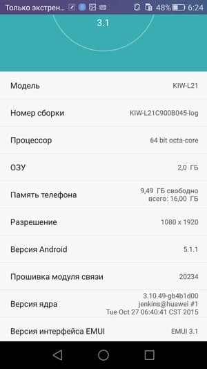 Основные характеристики Honor 5X (модель KIW-L21)