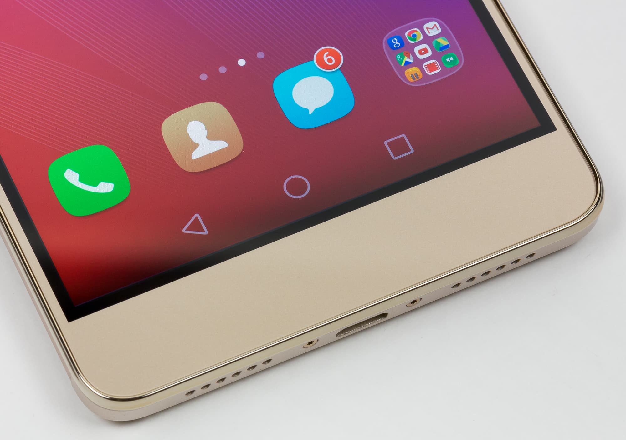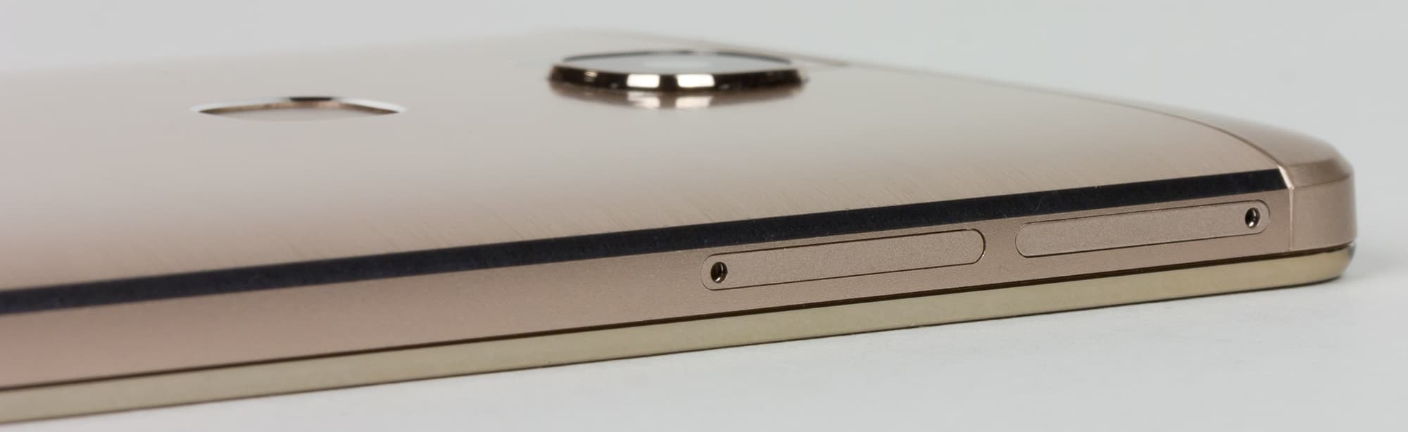 Непропорциональные, вытянутые отверстия в нижнем торце Honor 7, прикрывающие выход динамика, здесь заменили на круглые, добавили пару симметрично расположенных шурупов, и все сразу встало на свои места. Это еще раз доказывает, что если уж что-то копируешь, то иногда лучше не пытаться вносить свое ви́дение, это может только все испортить. Торцы здесь, как и у Honor 7, выполнены из окрашенного пластика, но он выглядит совершенно иначе и гораздо привлекательнее.