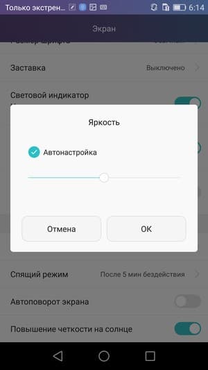 При ручном управлении яркостью и при выводе белого поля во весь экран максимальное значение яркости составило около 510 кд/м², минимальное — 6 кд/м². Максимальная яркость очень высокая, значит, учитывая хорошие антибликовые свойства, читаемость даже в солнечный день вне помещения должна быть на хорошем уровне. В полной темноте яркость можно понизить до комфортного значения. В наличии автоматическая регулировка яркости по датчику освещенности (он находится левее глазка фронтальной камеры). В автоматическом режиме при изменении внешних условий освещенности яркость экрана как повышается, так и понижается. Работа этой функции зависит от положения ползунка регулировки яркости. Если он на 100%, то в полной темноте функция автояркости уменьшает яркость до 70 кд/м² (многовато), в условиях освещенного искусственным светом офиса (около 400 лк) устанавливает на 320 кд/м² (можно было и поменьше), в очень ярком окружении (соответствует освещению ясным днем вне помещения, но без прямого солнечного света — 20000 лк или немного больше) яркость повышается до 510 кд/м² (до максимума — так и нужно); если регулировка примерно на 50%, то значения следующие: 6, 170 и 505 кд/м² (в темноте слишком темно, остальные значения подходящие), регулятор на 0% — 6, 46 и 270 кд/м² (значения заниженные, что логично). Компромиссным вариантом мы считаем установку ползунка примерно на 75% − 9, 230 и 510 кд/м². В целом функция автоподстройки яркости работает более-менее адекватно, разве что в полной темноте есть тенденция к занижению яркости, но часто в темноте экран включают уже после адаптации зрения, поэтому даже яркости в 6 кд/м² будет достаточно. На любом уровне яркости значимая модуляция подсветки отсутствует, поэтому нет и никакого мерцания экрана.
