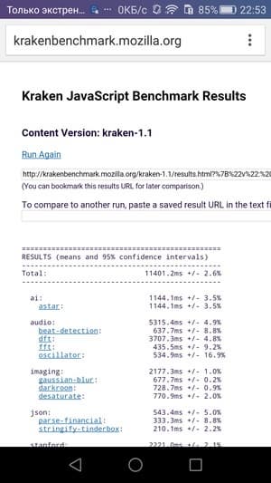 Что касается бенчмарков для оценки скорости движка javascript, то стоит всегда делать скидку на то, что в них результаты существенно зависят от браузера, в котором запускаются, так что сравнение может быть истинно корректным только на одинаковых ОС и браузерах, а такая возможность имеется при тестировании не всегда. В случае с ОС Android мы всегда стараемся использовать Google Chrome.