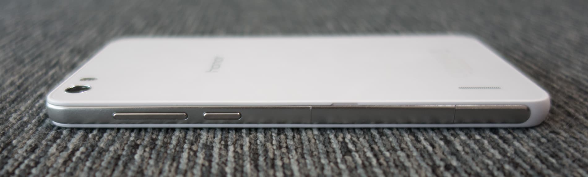Боковые грани Huawei Honor 6 закруглены совсем немного, что позволяет смартфону комфортно сидеть в руке. Большую часть боковой поверхности охватывает серебристая пластина из пластика. С эстетической точки зрения решение спорное.