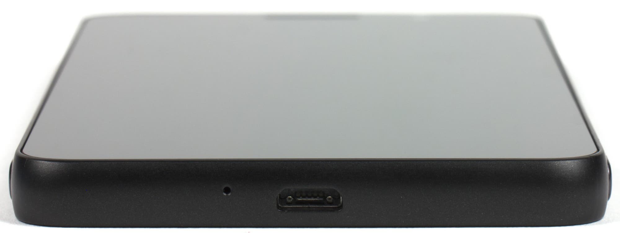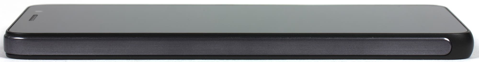 Еще ниже прорезана щель для выхода звука из основного динамика, прикрытая окрашенной в черный цвет решеточкой. Никаких выступов тут нет, поэтому звук значительно приглушается, когда смартфон лежит на твердой поверхности экраном вверх.