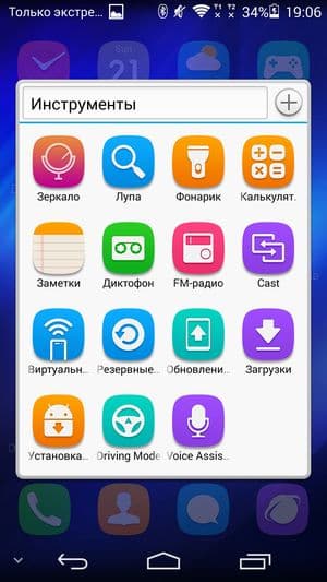 Организационно, наиболее заметная отличительная черта предустановленного фирменного графического интерфейса состоит в том, что в данной оболочке отсутствует меню приложений. То есть здесь все иконки установленных программ автоматически выкладываются прямо на рабочие столы, причем вперемешку с виджетами. Поддержка управления с помощью жестов, специальная программная кнопка управления с быстрым доступам к некоторым функциям — все на месте.