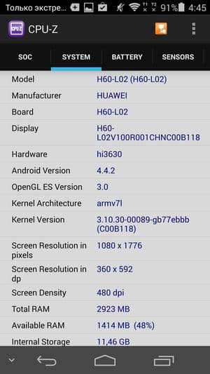 Основные характеристики Huawei Honor 6 (модель H60-L02)