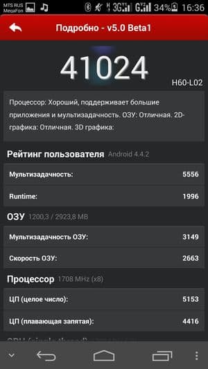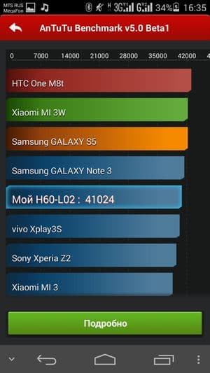 | AnTuTu (больше — лучше) | 41024 (v 5.0) | 31081 (v 4.x) | 25336 (v 4.x) | 26987 (v 4.x) |