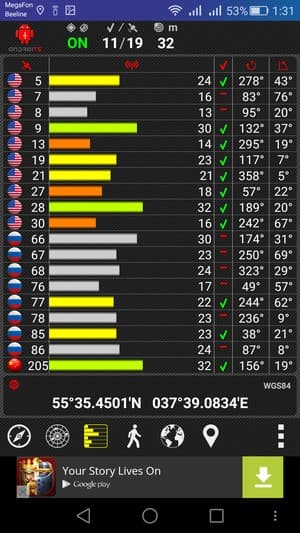 Навигационный модуль работает со всеми тремя мировыми системами: GPS (А-GPS), Глонасс и Beidou (BDS). К скорости работы навигационного модуля претензий нет, первые спутники обнаруживаюся при холодном старте в течение первых десятков секунд. Смартфон оборудован сенсором магнитного поля, на основе которого функционирует компас навигационных программ.