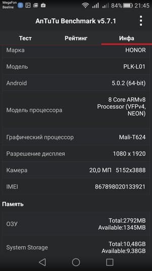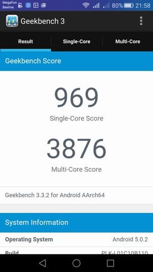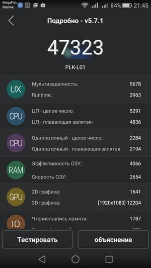 Тем не менее, если отойти от сухих цифр синтетических бенчмарков, недостатка в производительности пользователь Honor 7 не ощутит. Этот смартфон среднеценовой категории по производительности находится на текущий момент на уровне современных флагманов, чем, собственно, и привлек к себе столь пристальное внимание публики, интересующейся мобильной техникой. В любом случае аппаратных возможностей данного смартфона еще долгое время будет хватать для выполнения любых задач, в том числе и не самых требовательных игр.