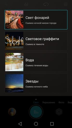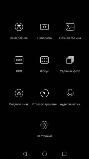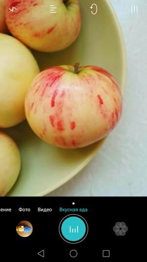 Меню настроек здесь точно такое же, как у старшего флагмана Huawei. Помимо автоматического режима, здесь можно также выбрать панорамный, HDR, режим выборочной фокусировки, ночной съемки, удачное фото и даже такие более специфические режимы, как распознавание текста, водяной знак и пр. В отличие от Mate S, здесь нет отдельного ручного режима управления, называемого «Профи», но ручную регулировку некоторых параметров можно осуществить прямо из основного списка пунктов меню настроек. Отдельное меню отвечает за развлекательные режимы для работы со светом в ночное время: разработчикам Huawei это показалось настолько интересным новшеством, что они установили режим «рисования светом» во все свои новые смартфоны. Но здесь они пошли еще дальше и добавили в быстрый доступ в качестве одного из основных режимов съемку еды.