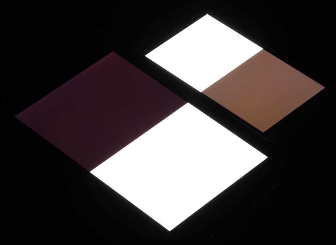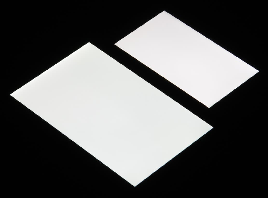 При перпендикулярном взгляде равномерность черного поля неидеальная, так как ближе к краю черный местами высветляется: